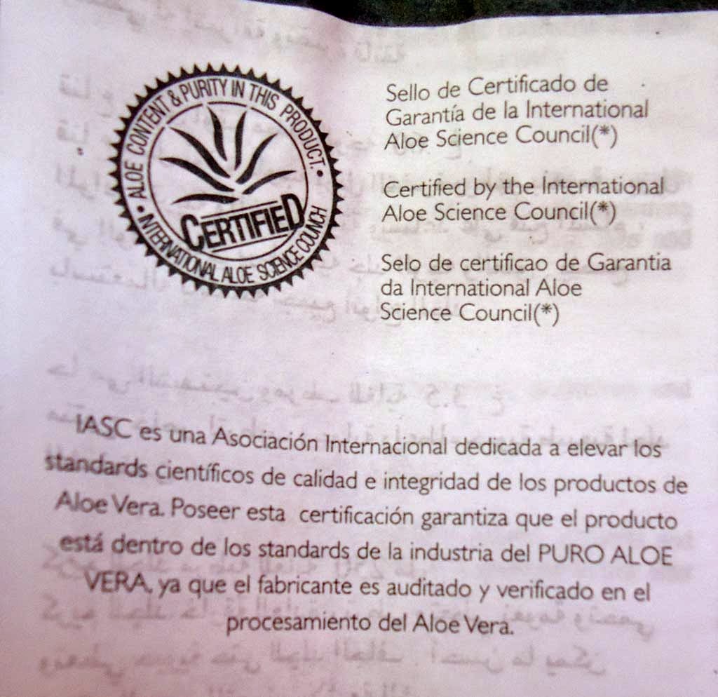 • Una cosa muy buena y que me llamo la atención, es este certificado de autenticidad que viene especificado en el folleto del producto. Es un Sello de Certificado de Garantia de la International Aloe Science Council (esta asociación es la responsable de certificar que cada producto tiene áloe vera verdadero y en crudo). Ahora, si bien yo fui a la página oficial este producto todavia no esta en su lista de productos aprobados. Lo más probable es que Garden Angels haya recibido este sello muy recientemente y falte actualizar esa lista. Aun asi, que tenga este sello es un golpe bajo a todas las demás marcas que dicen tener Áloe Vera, no se si será muy caro obtener este sello, pero es una gran prueba de confianza (publicitaria y marketineramente hablando).